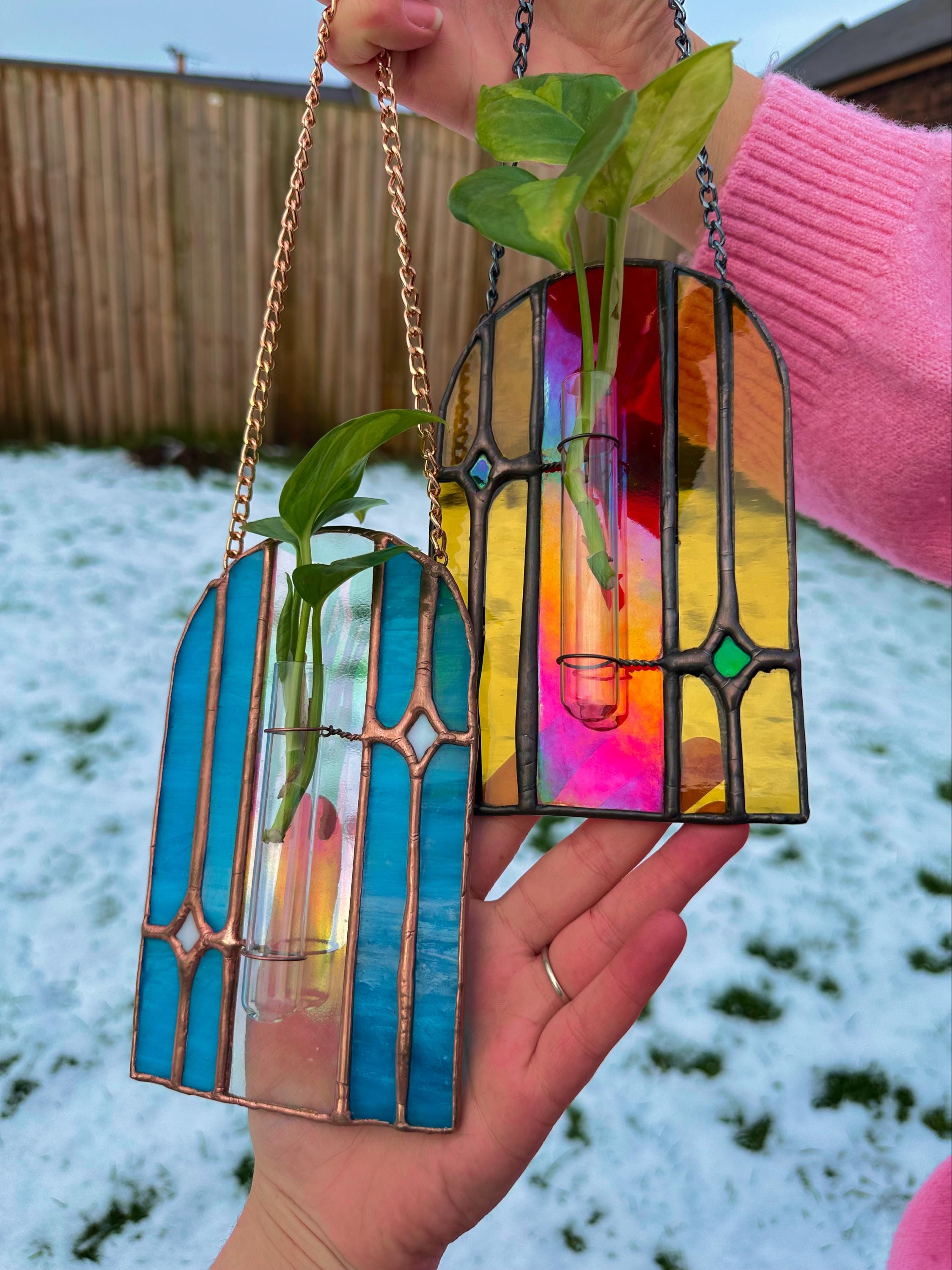 Stained Glass Plant Propagation Suncatcher |Handmade Hydroponic Dec...