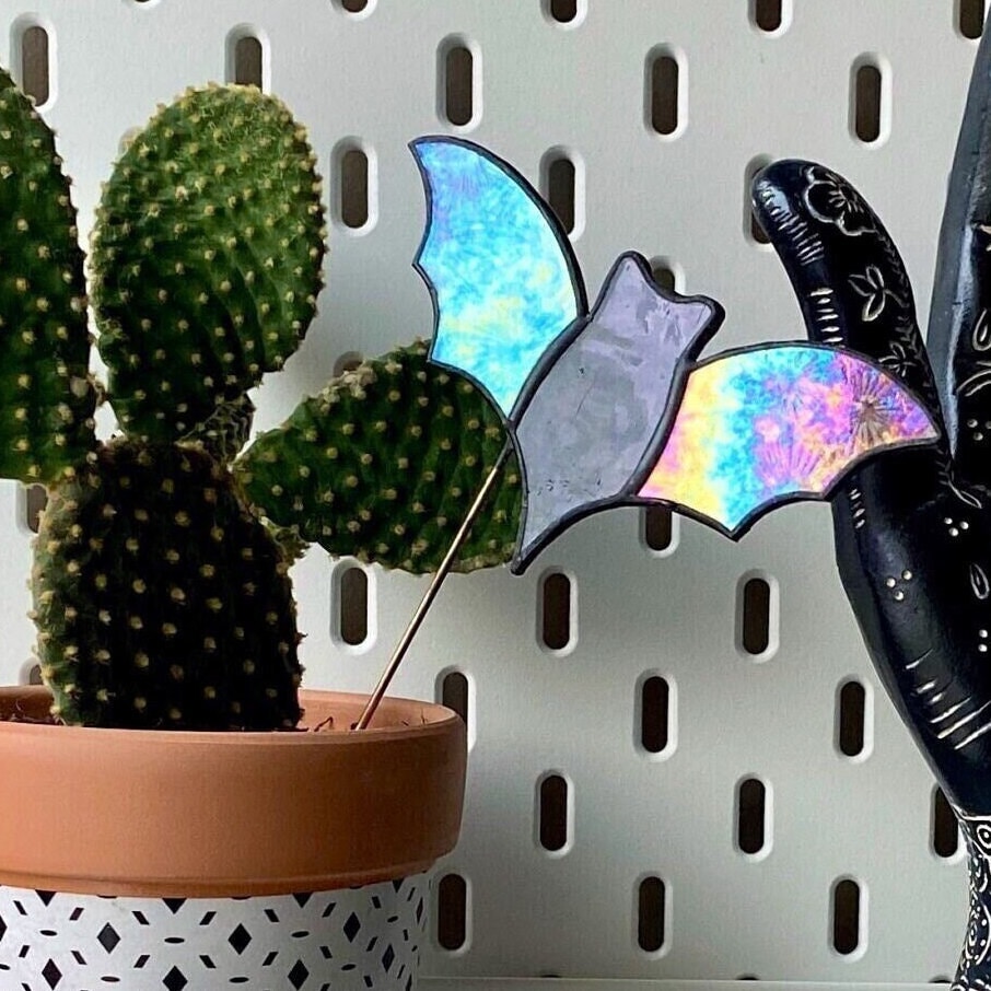 Stained Glass Plant Stake / Stained Glass Bat Suncatcher Plant Mum ...