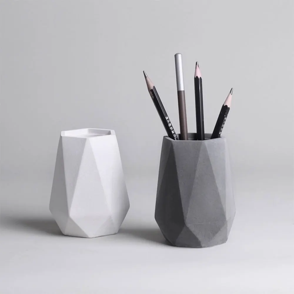 Geometric Pen Holder Cement Mold Indoor Plant Pot Concrete Mold Gypsum Vase Epoxy Resin Silicone Mol...