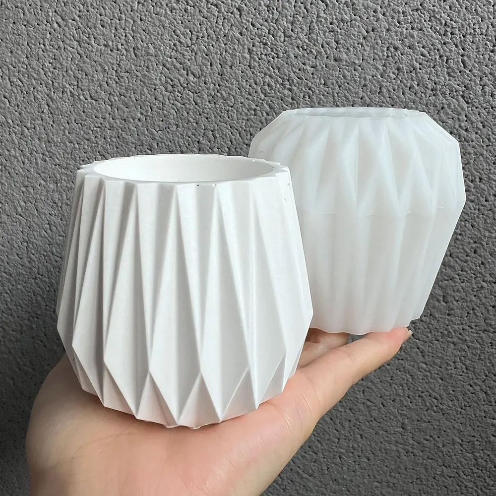 Big Size Geometric Shape Flowerpot Concrete Planter Molds Diamond Pen Holder Cement Vase Candle Jar ...