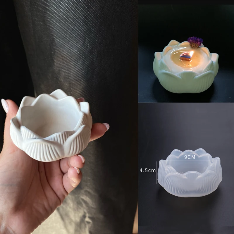 3D Lotus Silicone Mold Jar DIY Aromatherapy Candle Mould Pot Handmade Jewelry Storage Box Making Con...