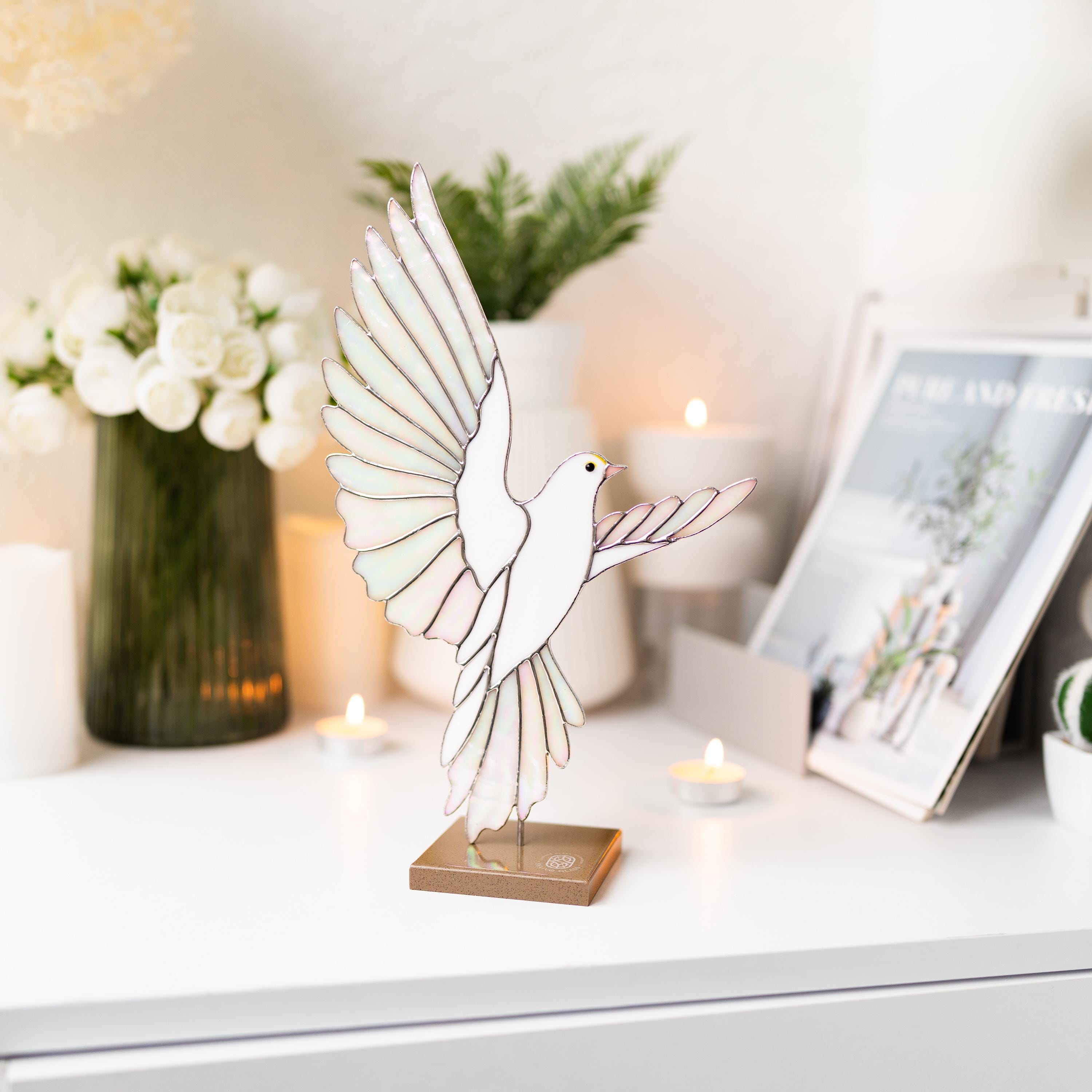 Stained glass dove table decor Peace bird table sculpture Spiritual...