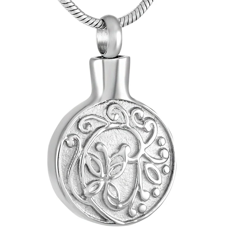 Stainless Steel Ash Flower Round Cremation Keepsake Pendant Holder ...