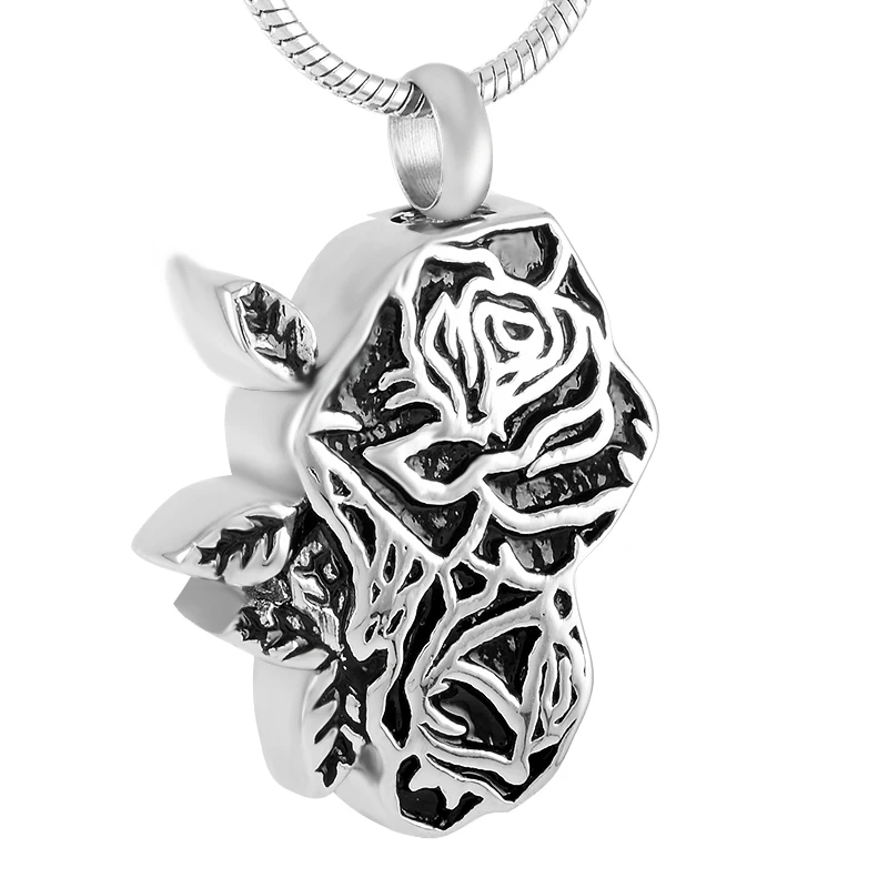 Stainless Steel Rose Flower Cremation Urn Jewelry Ash Keepsake Flow...