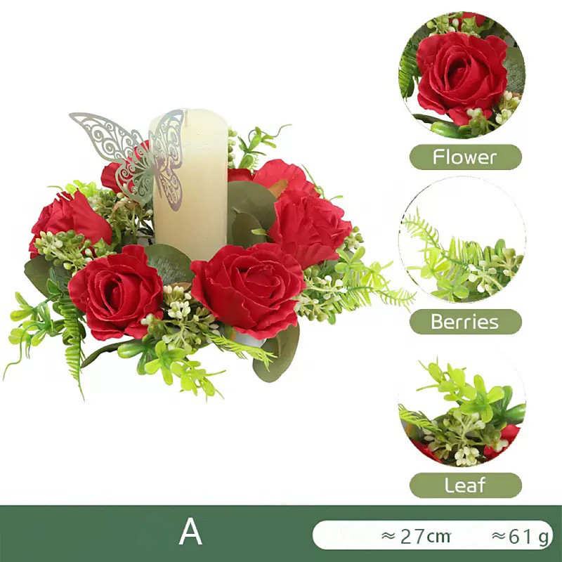 Artificial Rose Candle Ring Wreath, Floral Candlestick Decoration f...