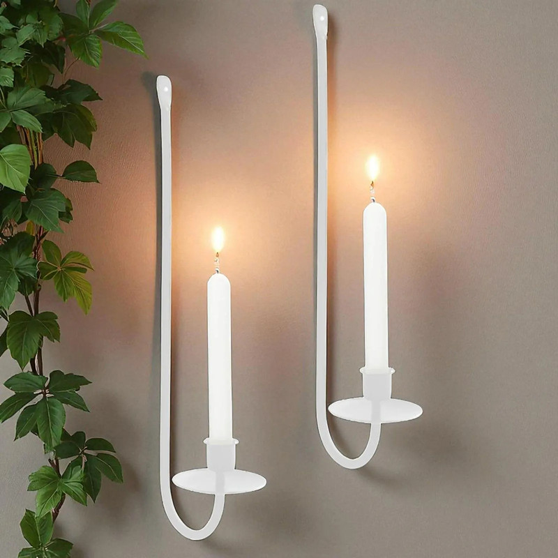 Metal Wall Candle Sconces 2-Piece Set Wall-Mounted Candlesticks Mod...