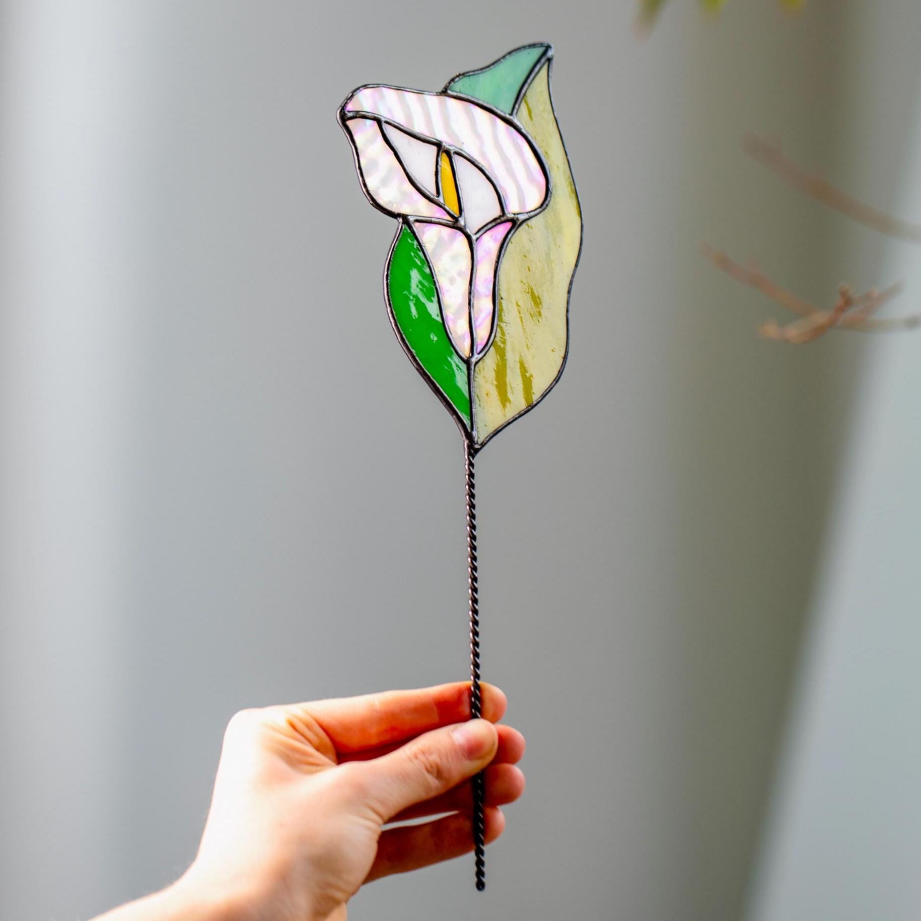 Iridescent White Calla Lily Home Stained Glass Plant Pot Decor | An...