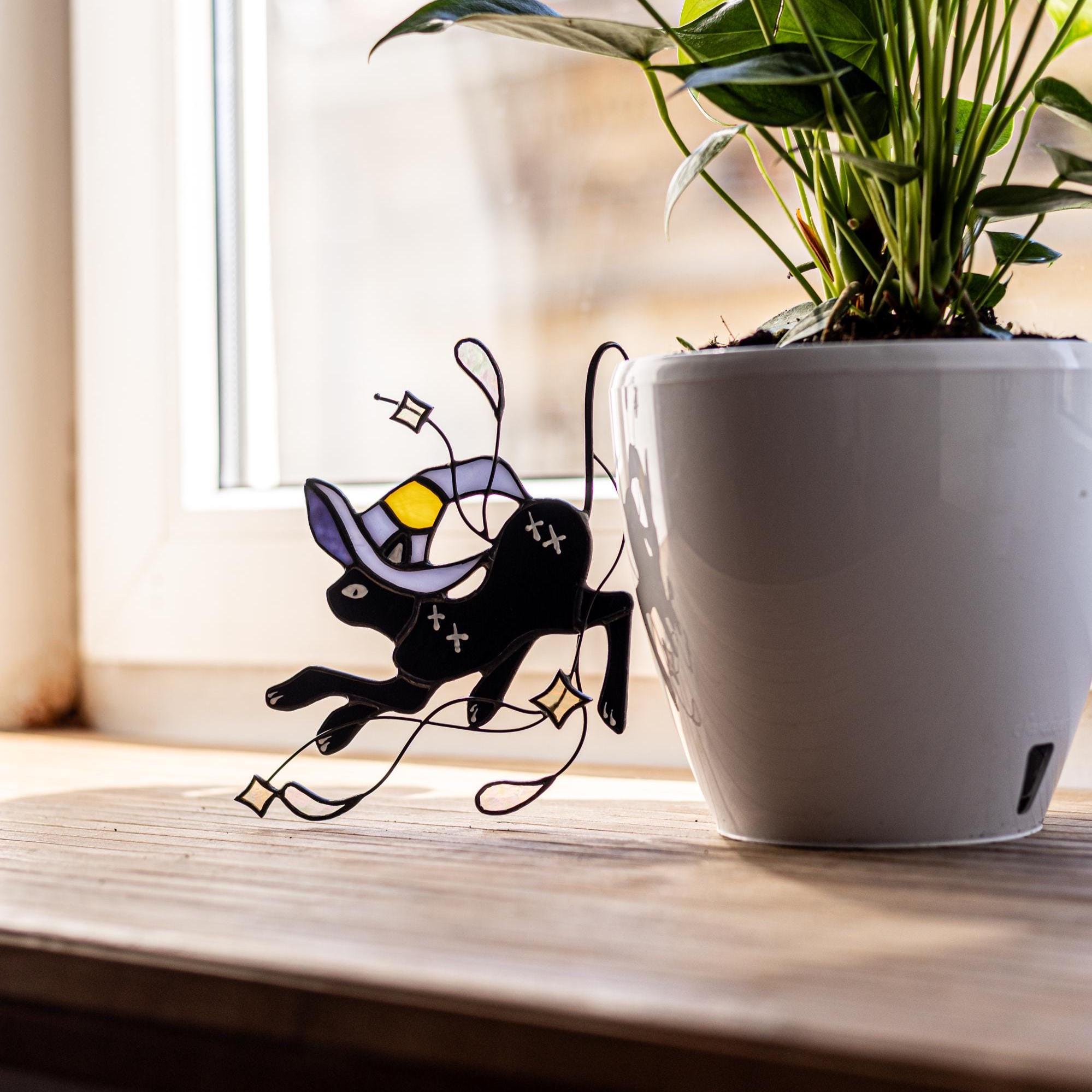 Stained Glass Witchy Cat Pot Decoration, Garden Patio Planter Home ...