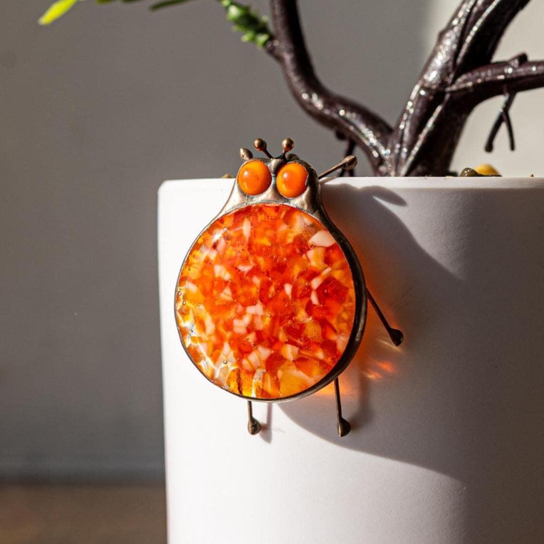 Bright and cheerful, this stained glass ladybug brings a pop of color and joy to any flower pot. A c...