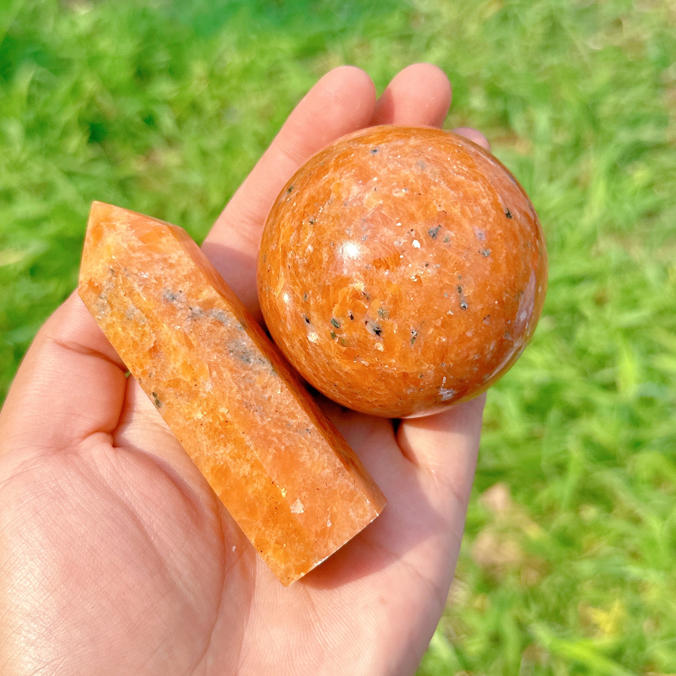 A Set Of 50MM Natural Sunstone Crystal Ball + 70g Sunstone Crystal ...