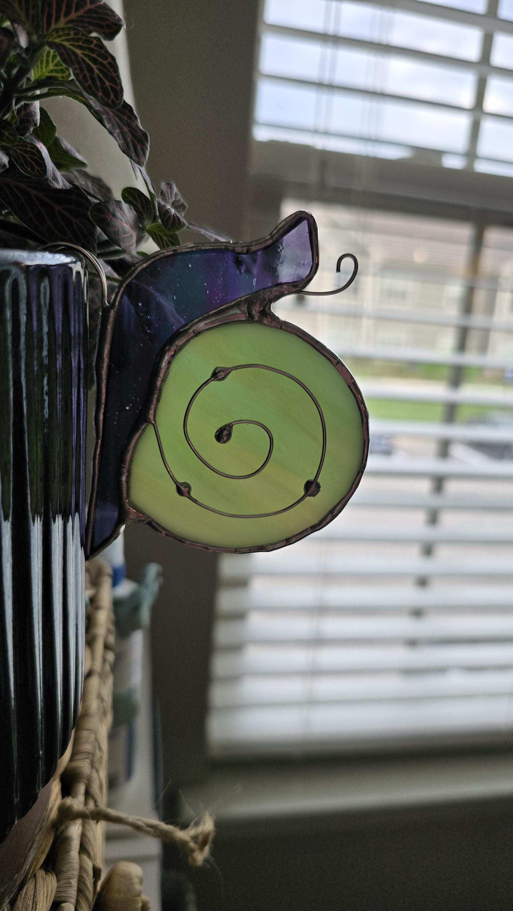 Stained Glass Snail Plant Charm for Indoor Plant Pot - green/purple