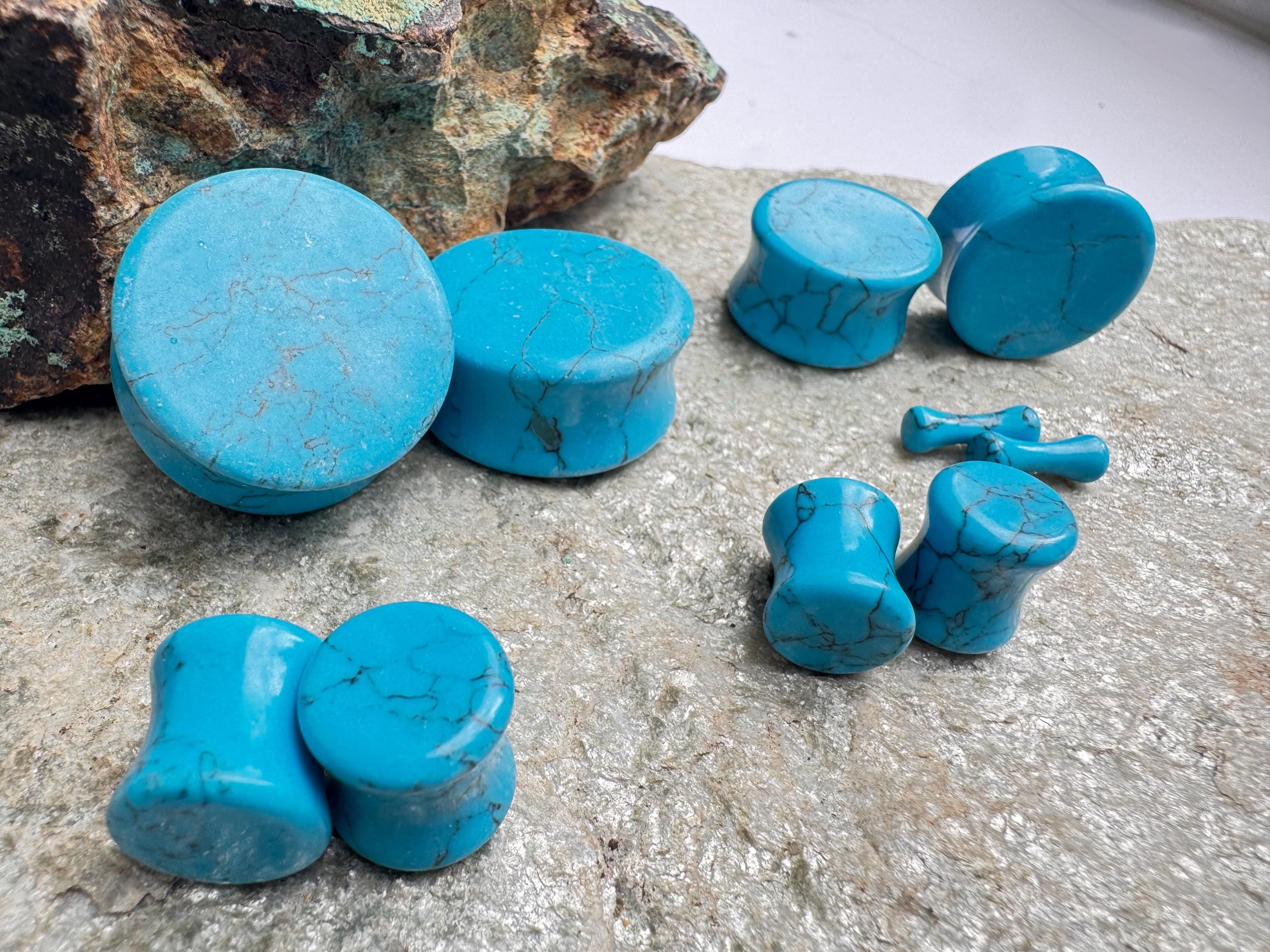 "Double Flared Turquoise Plugs | Stone Plugs | Double Flared P...