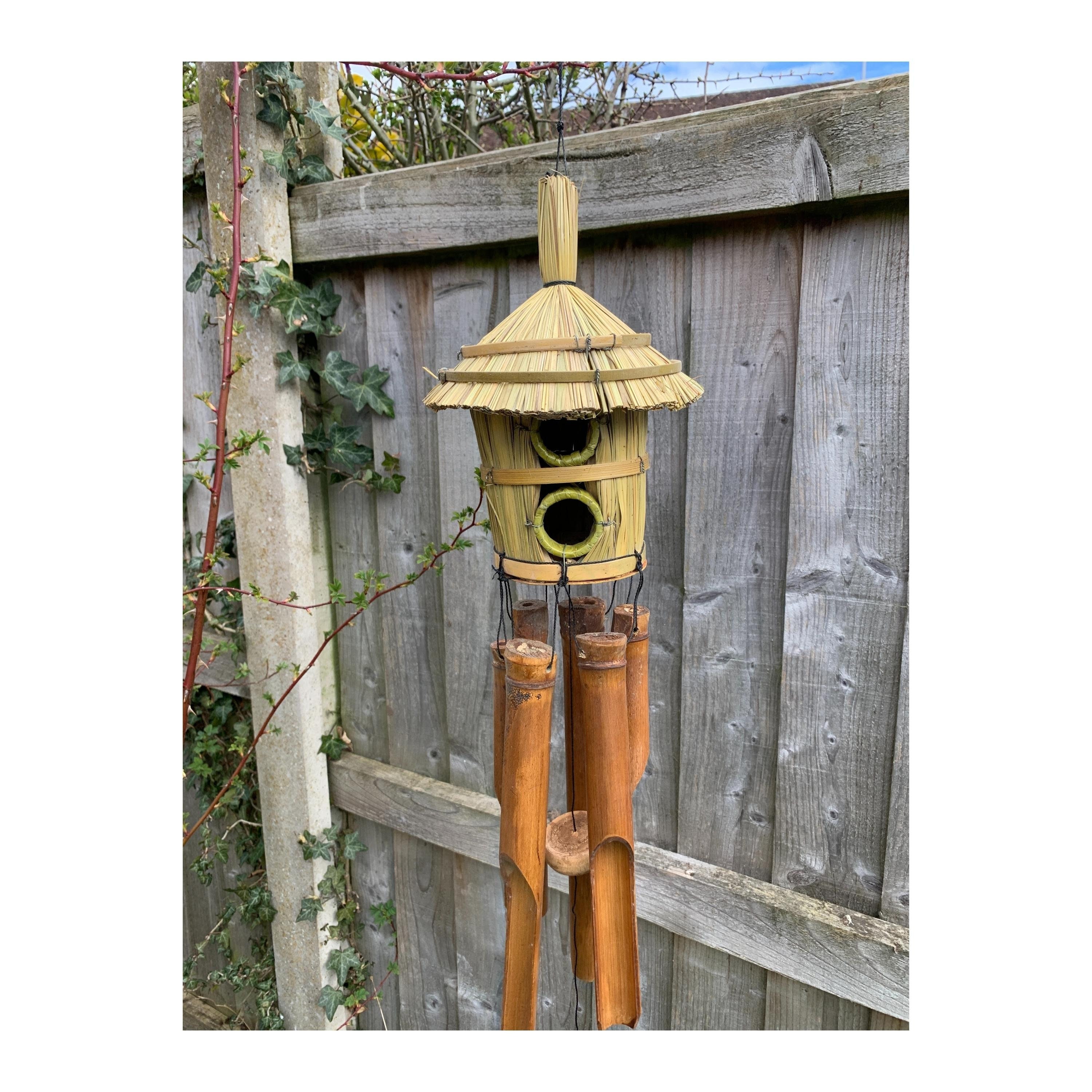 Bamboo Windchime & Bird House Straw Ideal For Garden Birds Musi...