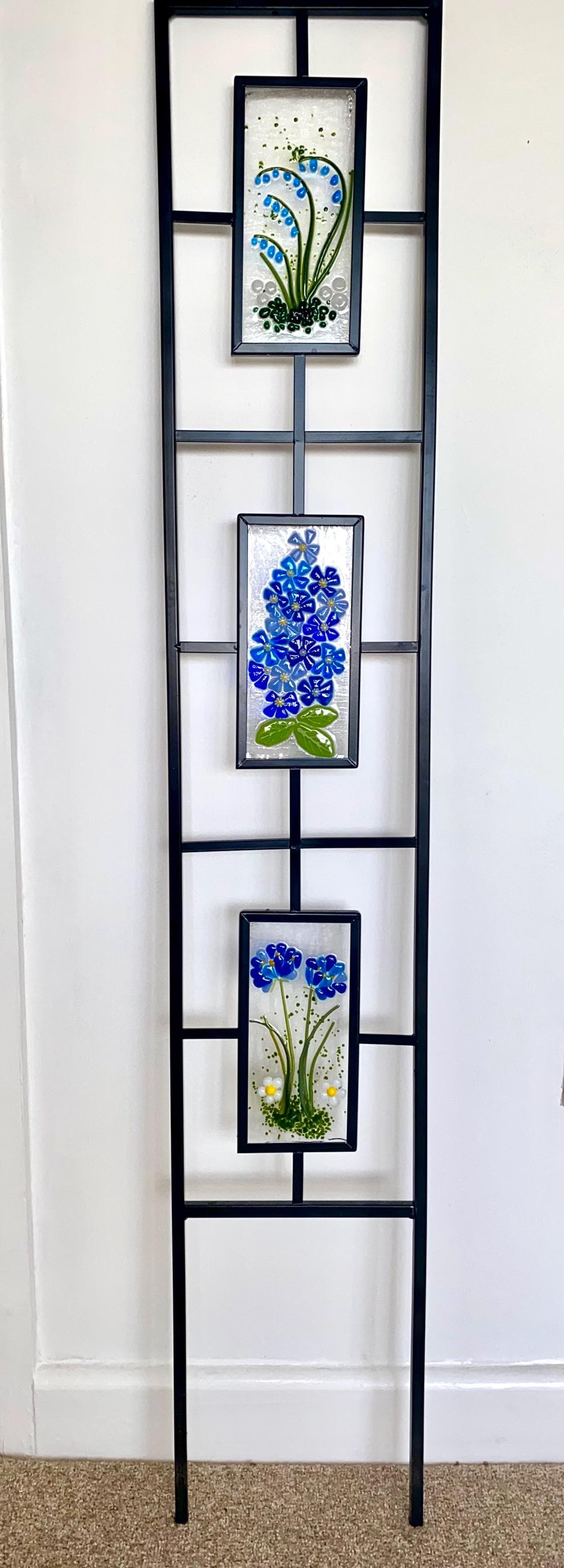 Fused Glass Flower Panels on Garden Trellis Stand - Made to Order &...