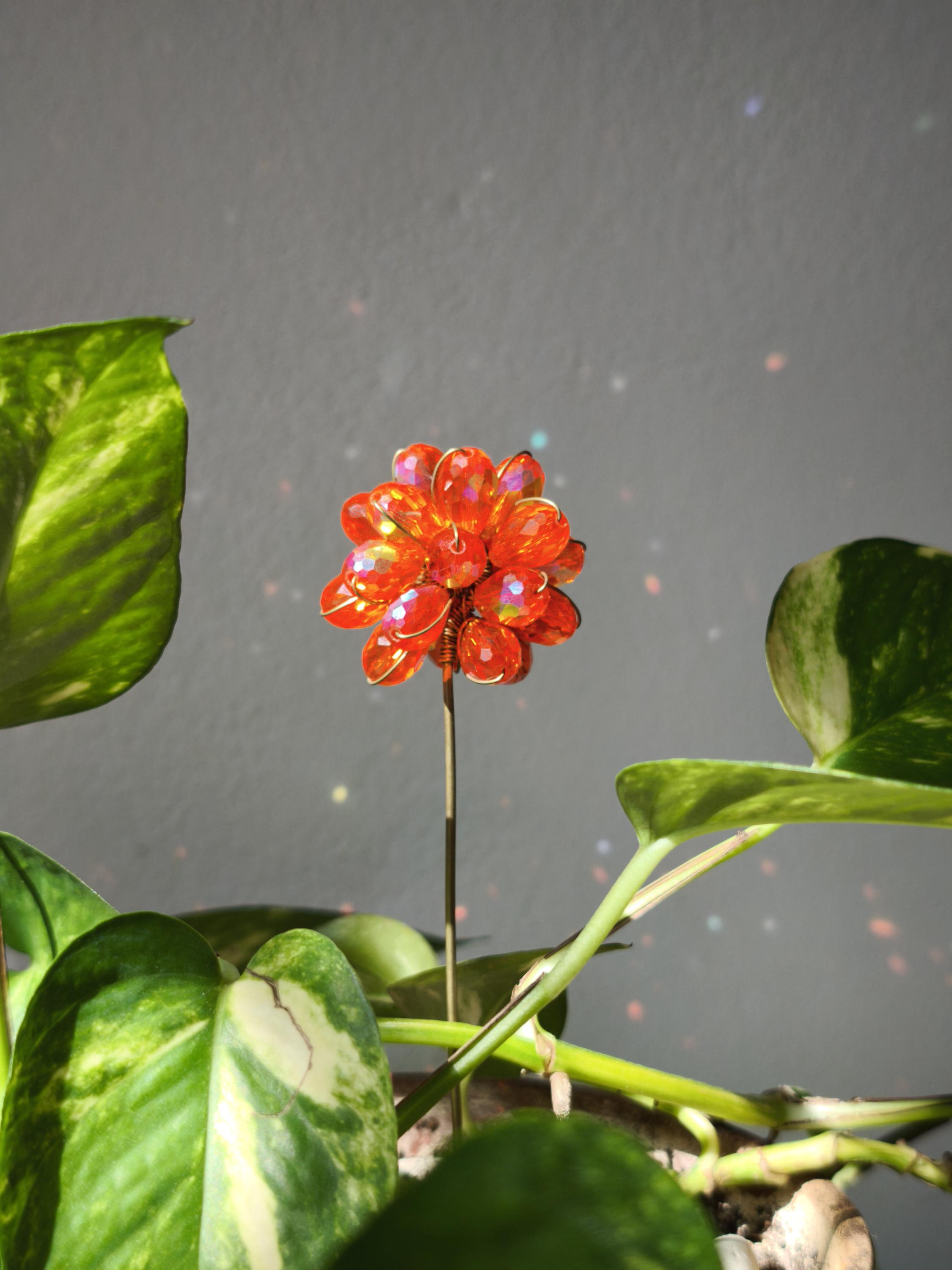 Marigold flower suncatcher beaded Potted plant stake/ /Plant Trelli...