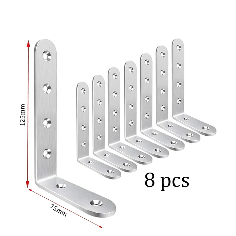 8pcs Brackets Shelves Heavy Duty Stainless Steel L Shaped Bracket Corner Brace Joint Right Angle Bra...