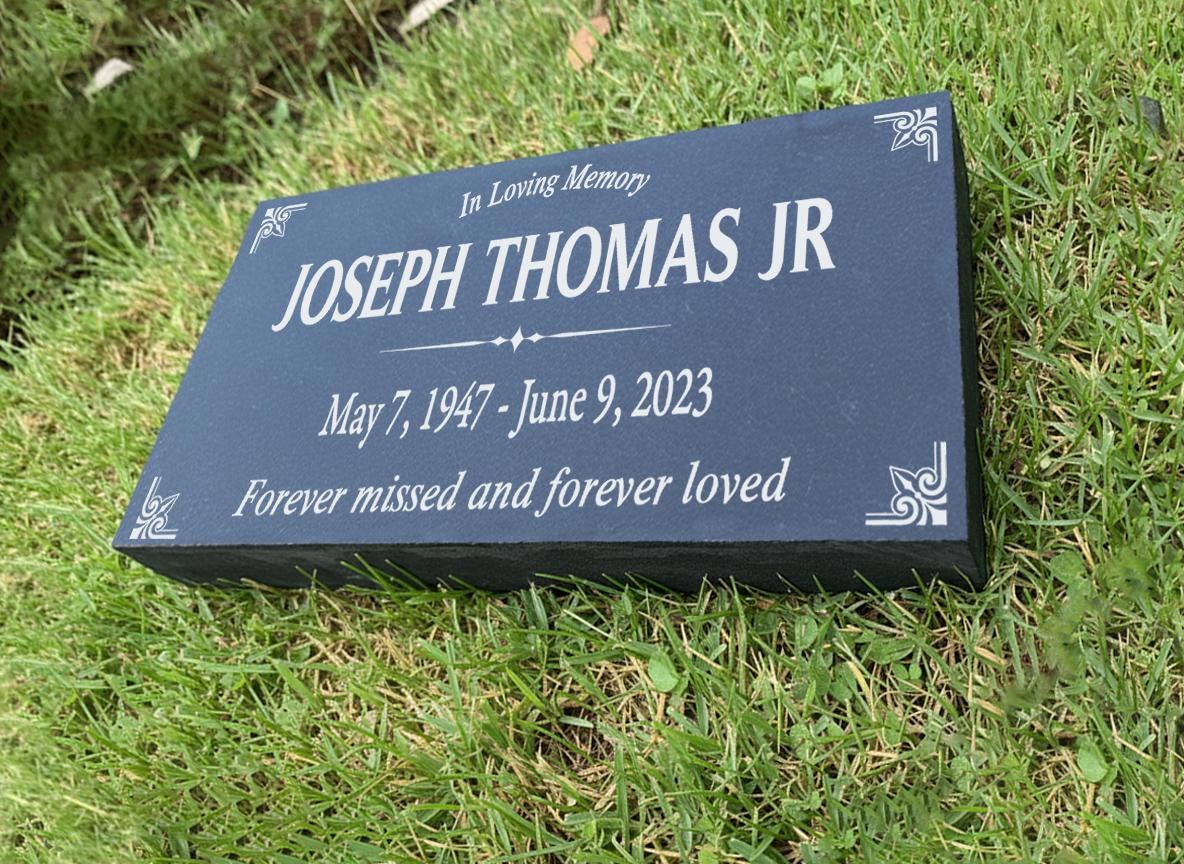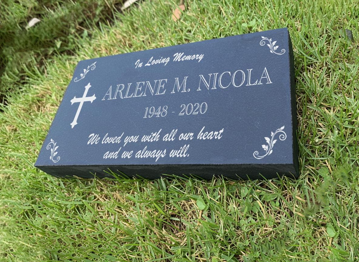 The beautifully made gray slate stone is a great way to honor your loved ones. This etched memorial ...