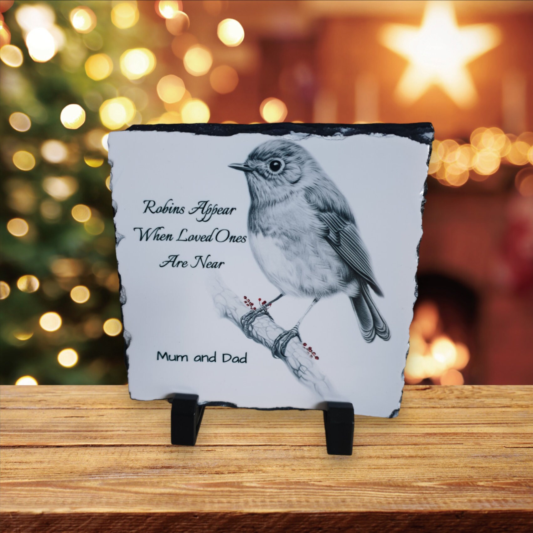 Robins Appear When Loved Ones Are Near Slate, Personalised Robin Slate Gift, Memorial Slate, Natural...