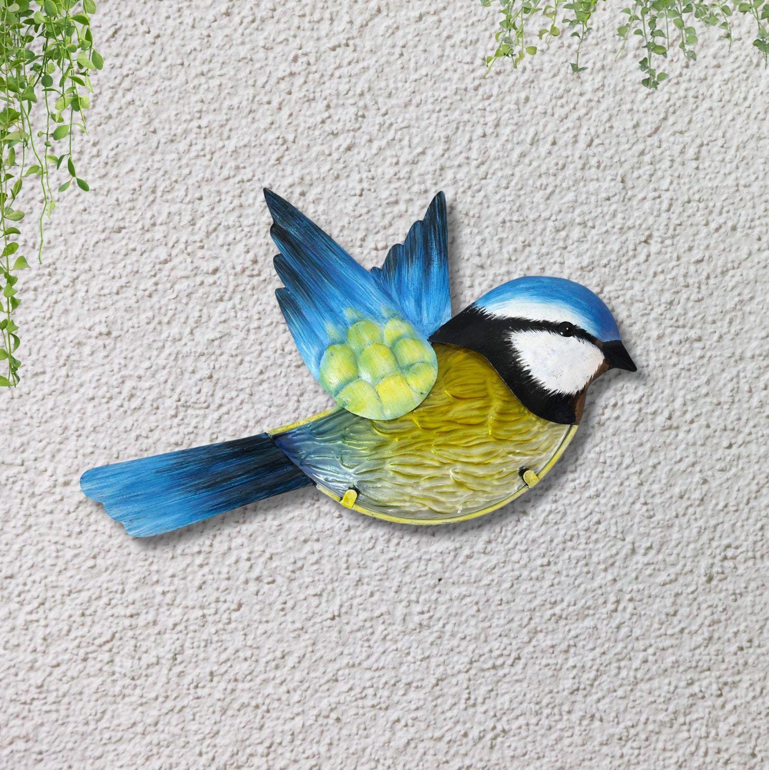 Hand Painted Metal Blue Tit Garden Decor, Wall Hanging, Glass wall ...
