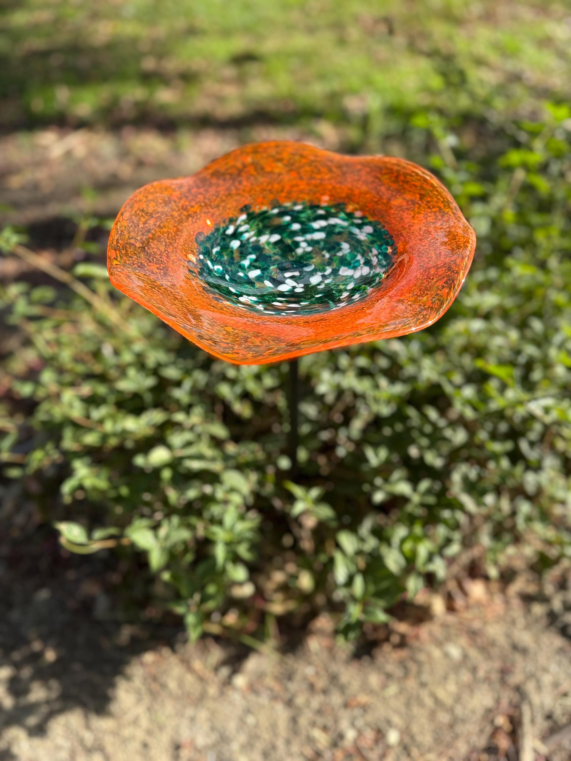 Large Art Glass Bee drinking/Bird Bath/ Sun Catcher Stake