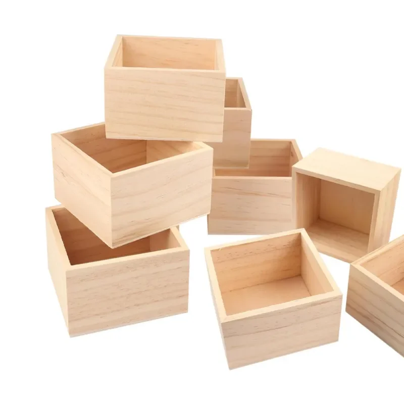 High Quality New Box Wooden Box Household Organization Supplies Wedding Accessories Plain Wooden Squ...