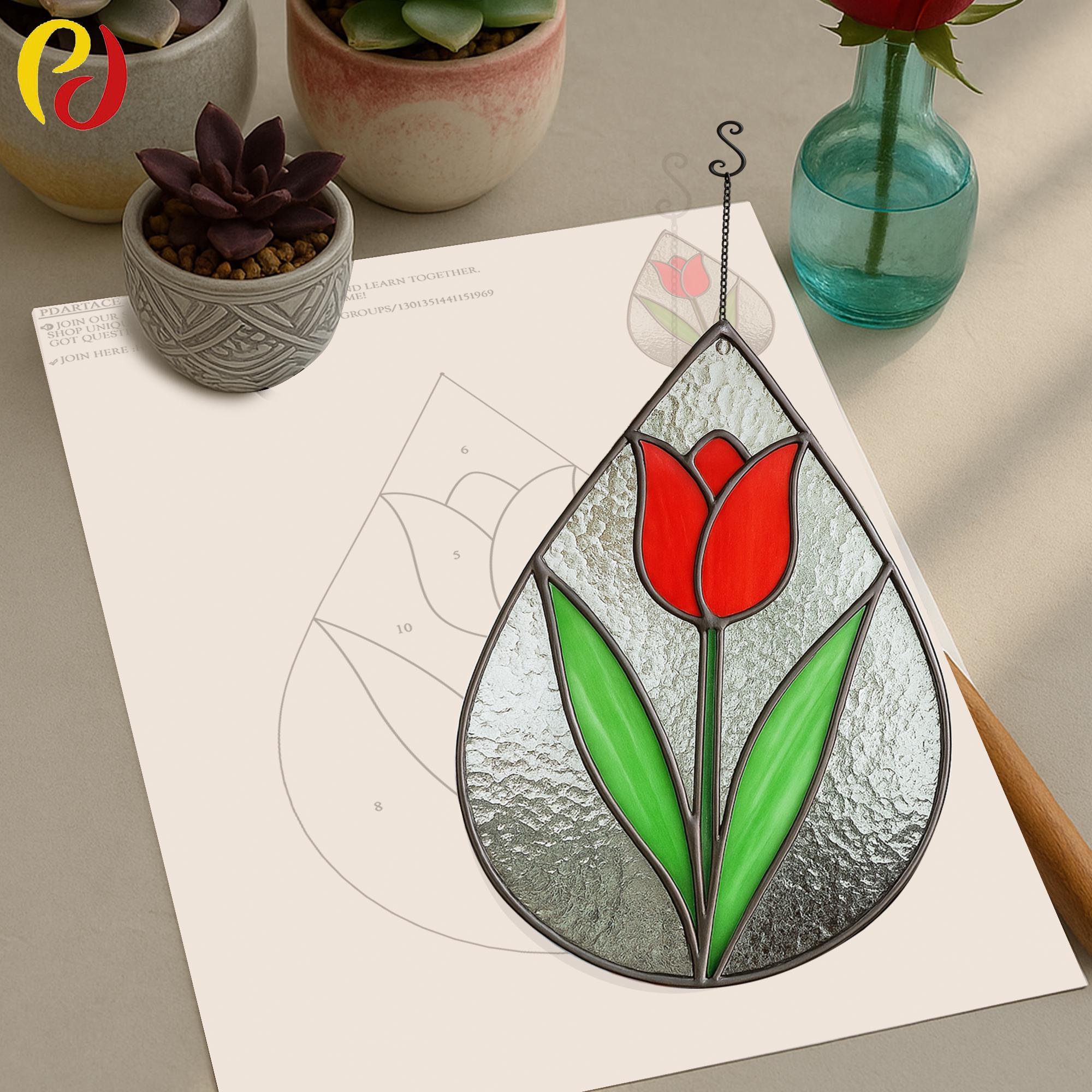 PDACE52 stained glass tulip Flower Drop Stained Glass Pattern, Stai...