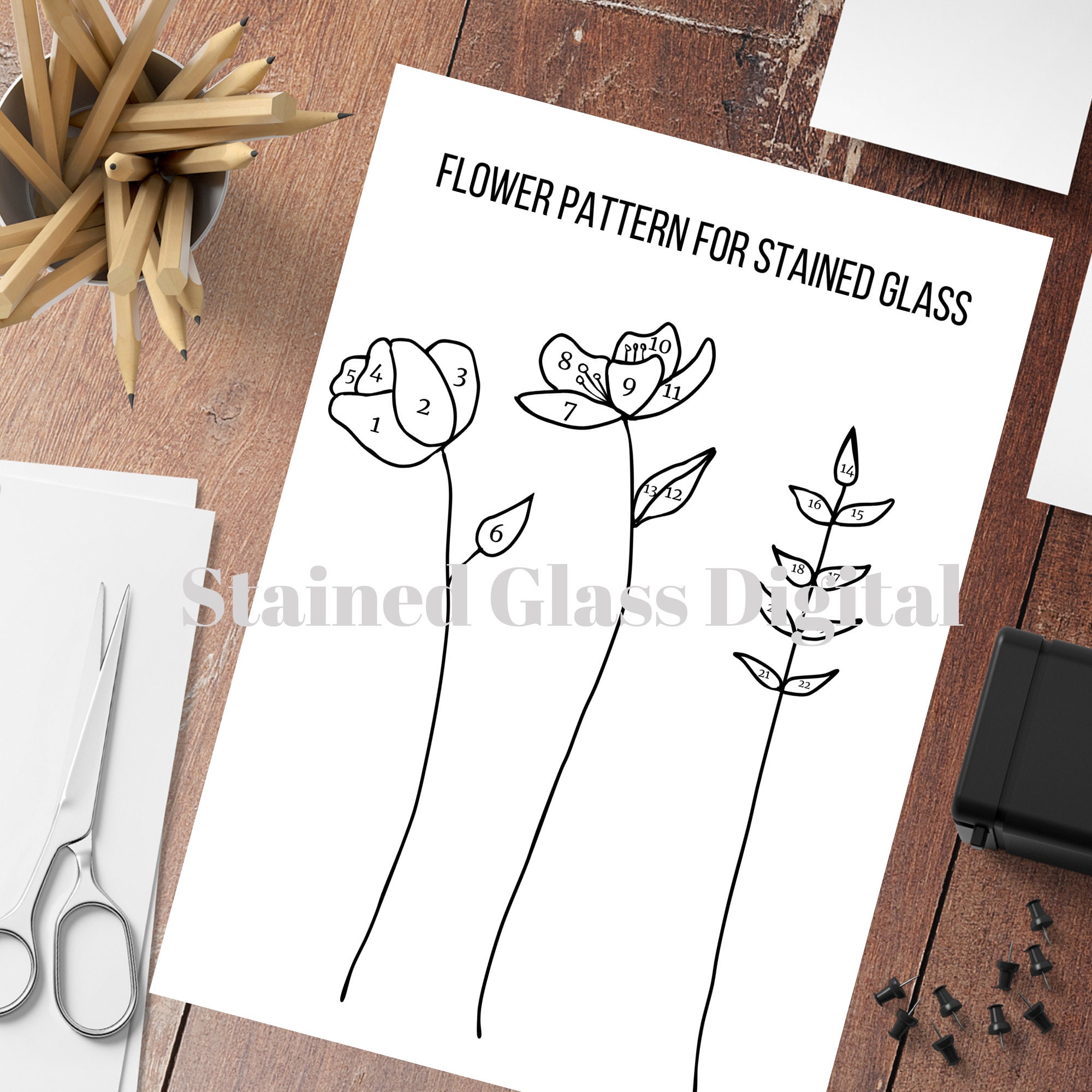 Flower Pattern for Stained Glass, Stained Glass Pattern, Flower Pattern, DIY Stained Glass, Modern S...