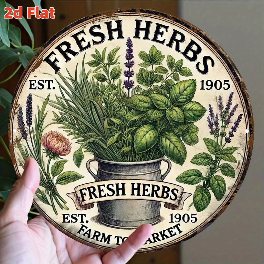 7.8" 2D Flat Vintage Rustic Round Aluminum Herb Garden Sign - Fresh Herbs Design, EST. 1905, Fa...