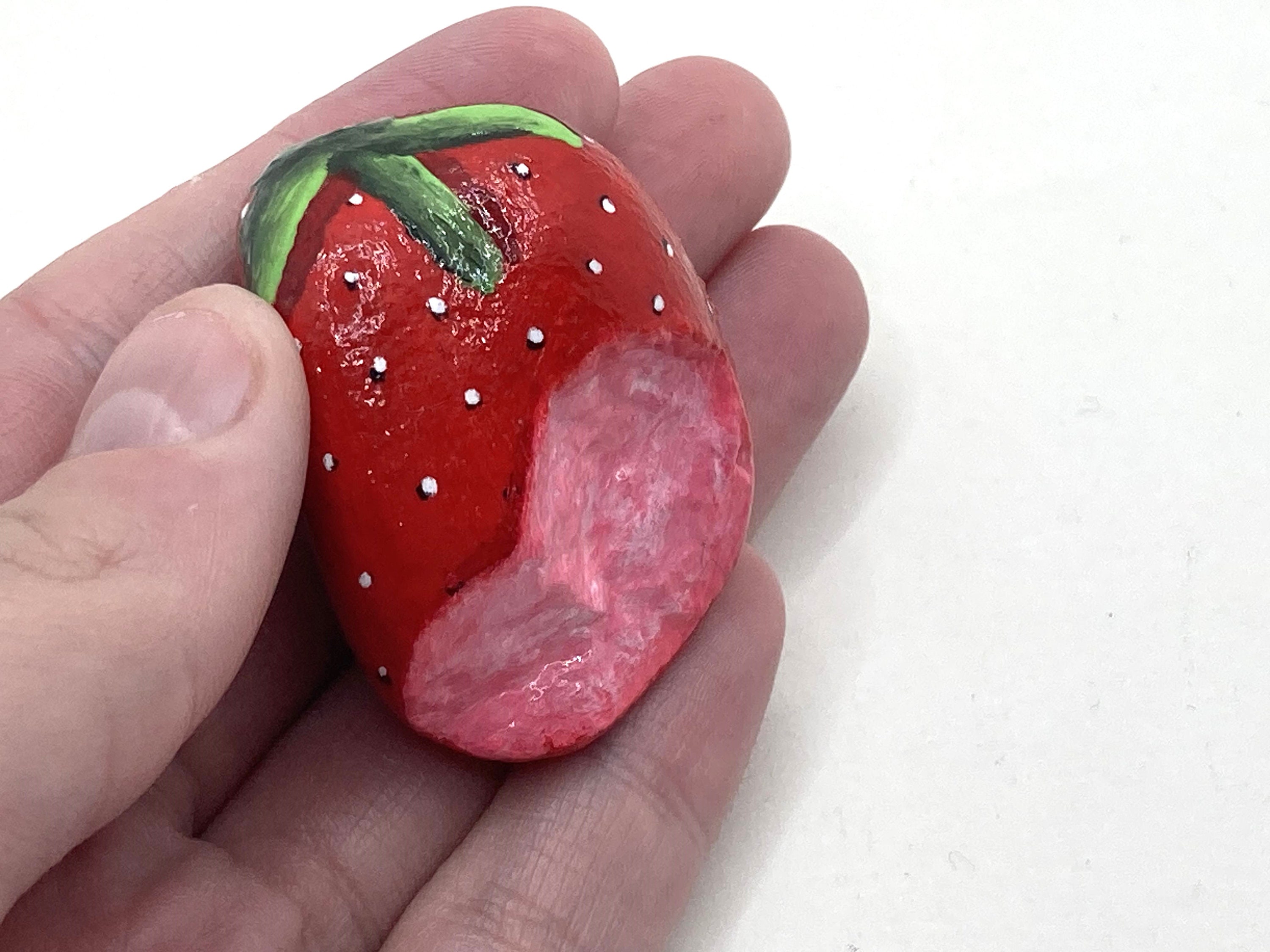 Realistic Bitten Strawberry Rock - Hand Painted Rock - Kitchen Deco...