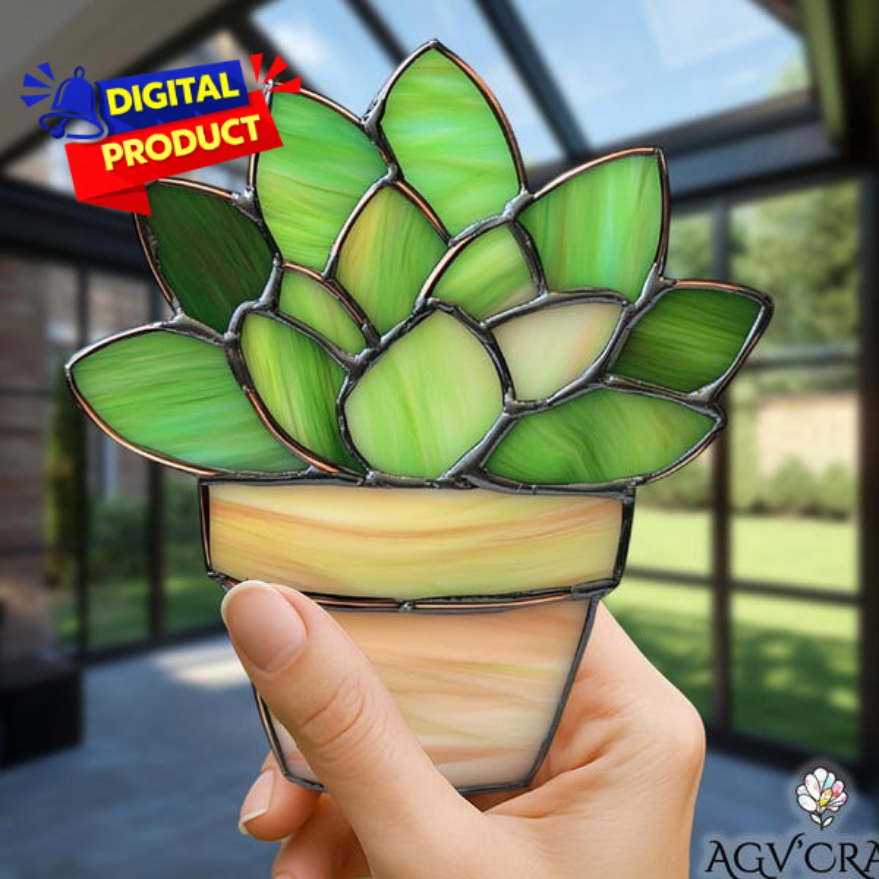 Succulent Stained Glass Pattern, Succulent Desert Stained Glass, Su...