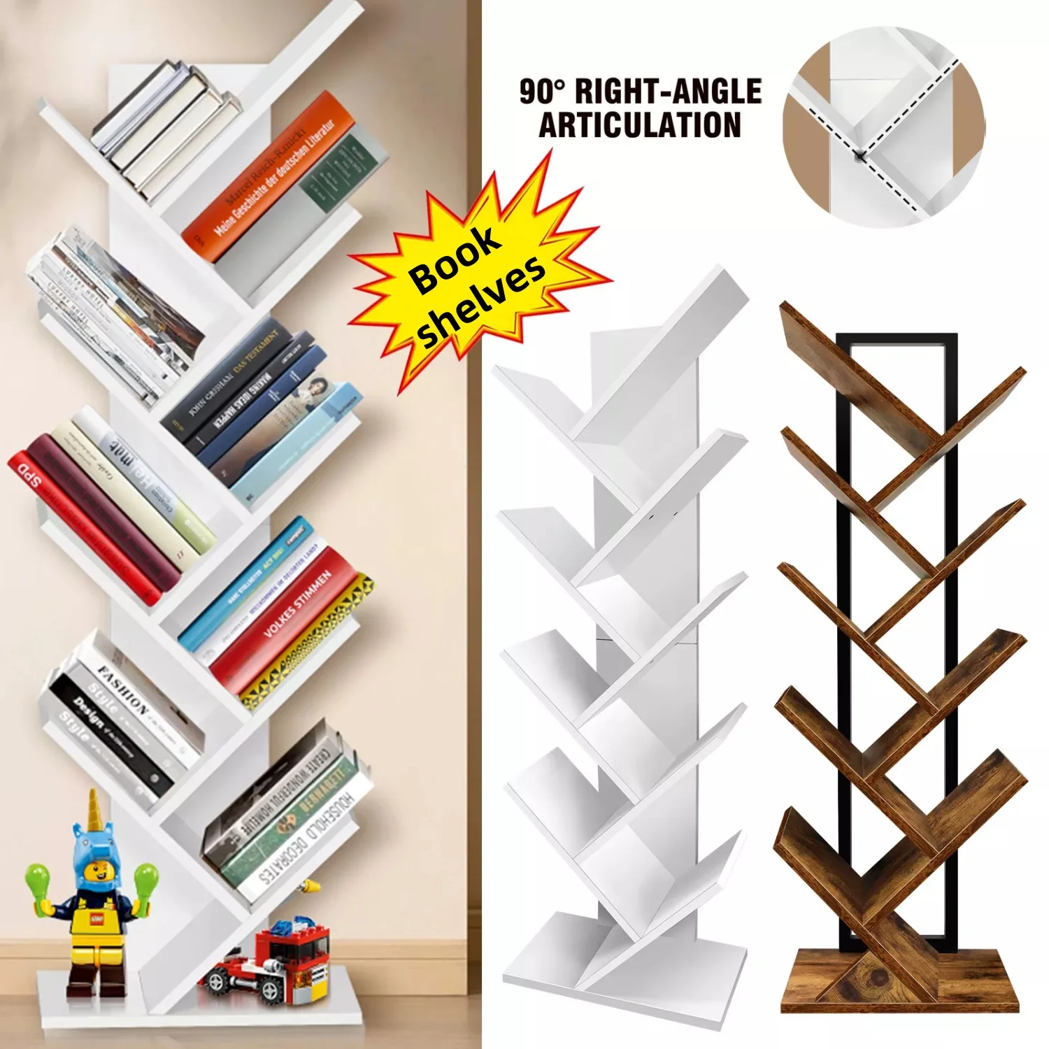 BRIEFNESS 9 Tier Tree Bookshelf Floor Standing Bookshelf Wooden Tre...