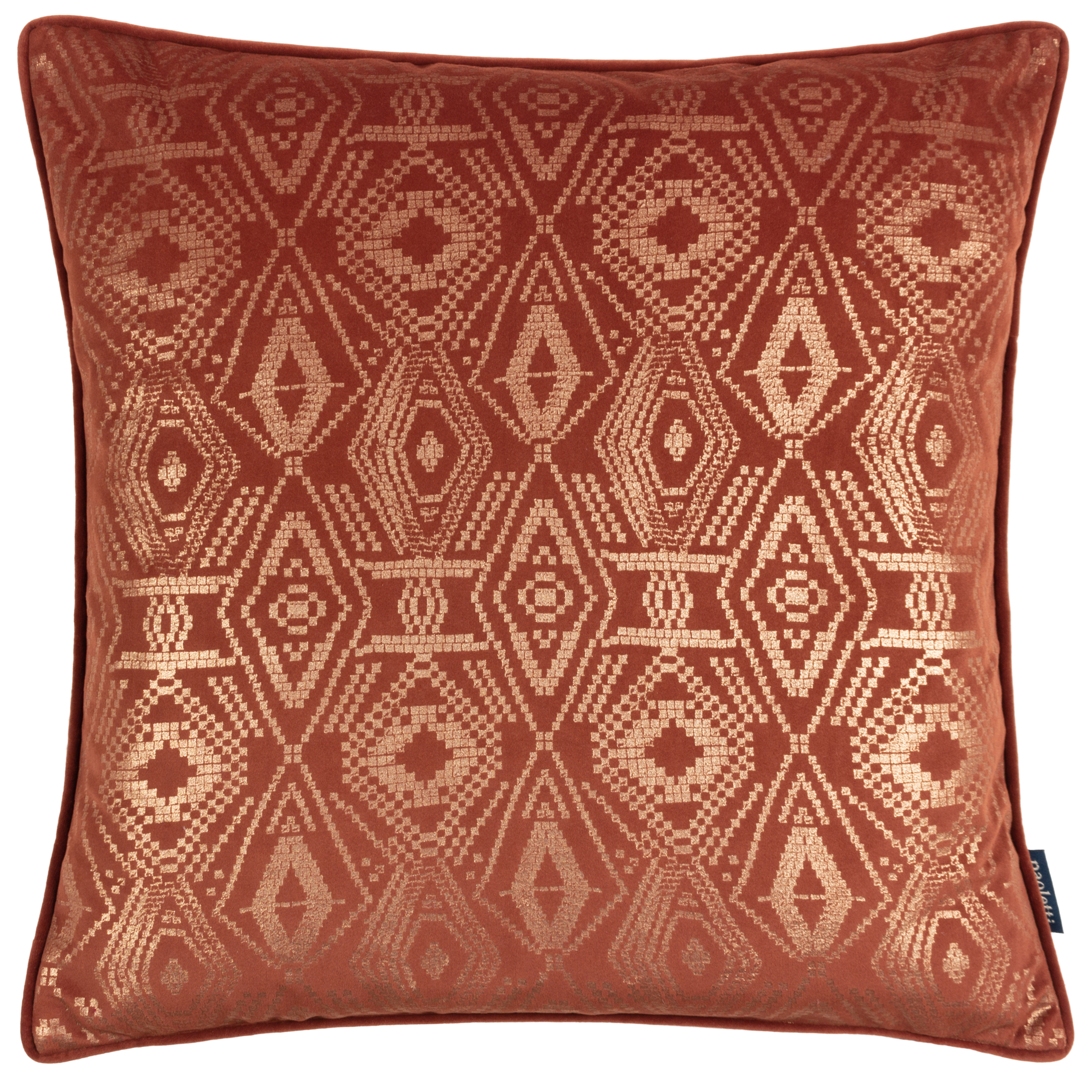 Paoletti Tayanna Geometric Foil Piped Feather Filled Cushion - Burg...