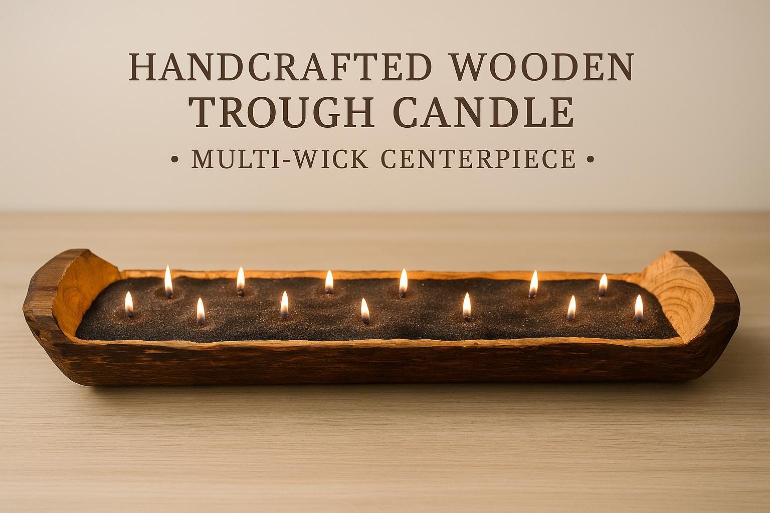 Large Wooden Trough Candle * Multi-Wick Rustic Centerpiece * Handcr...