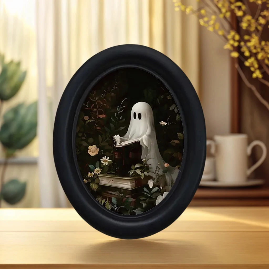 1 Piece of Retro Halloween Ghost Decorative Mural in the Flower - Handmade Oval Wooden Decorative Wa...