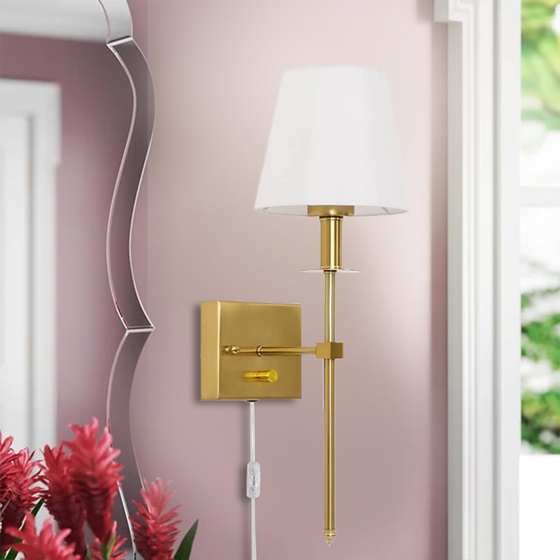 Plug in Wall Sconce Dimmable Wall Sconces 1pcs, White Fabric Shade ...