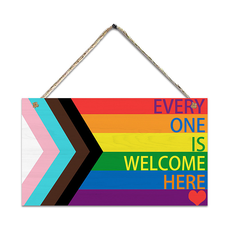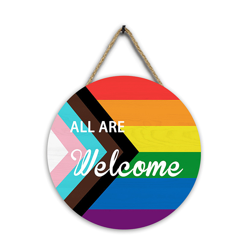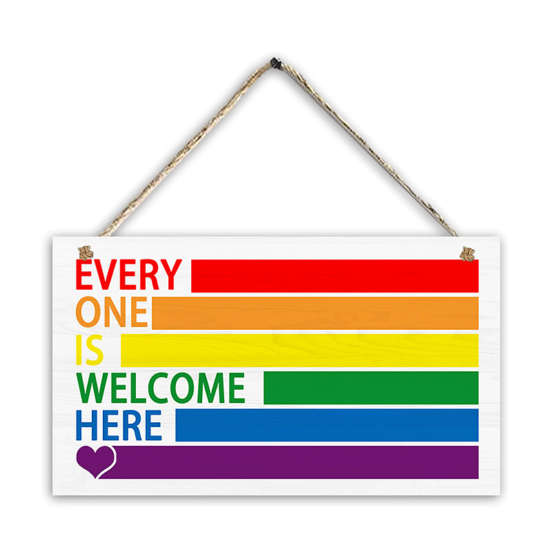 Pride Rainbow Wooden Wall Sign, Love is Love Welcome Door Plaque, L...