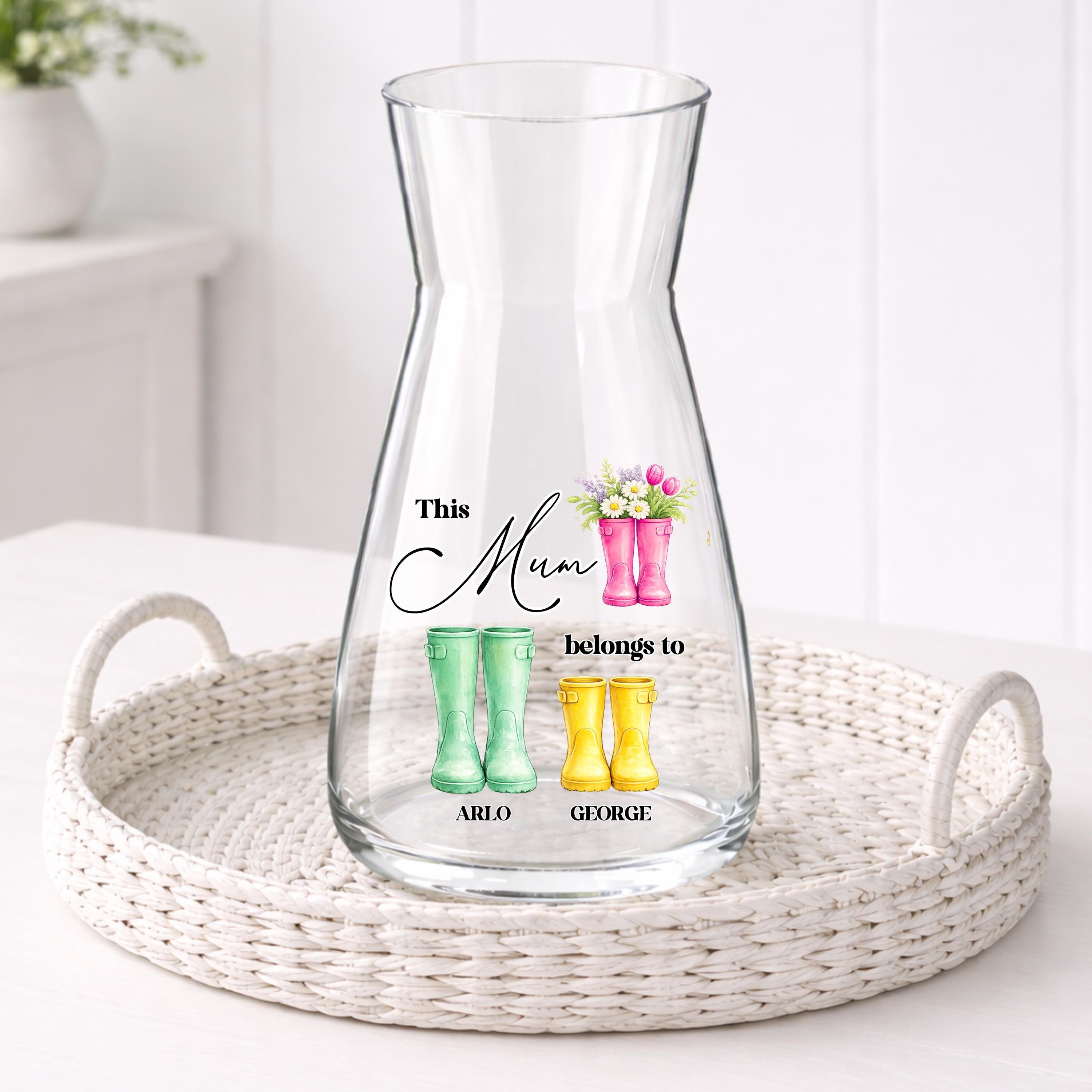 Happy Mothers Day Vase, Wellingtons, Wellies, UV DTF Decal, Custom ...
