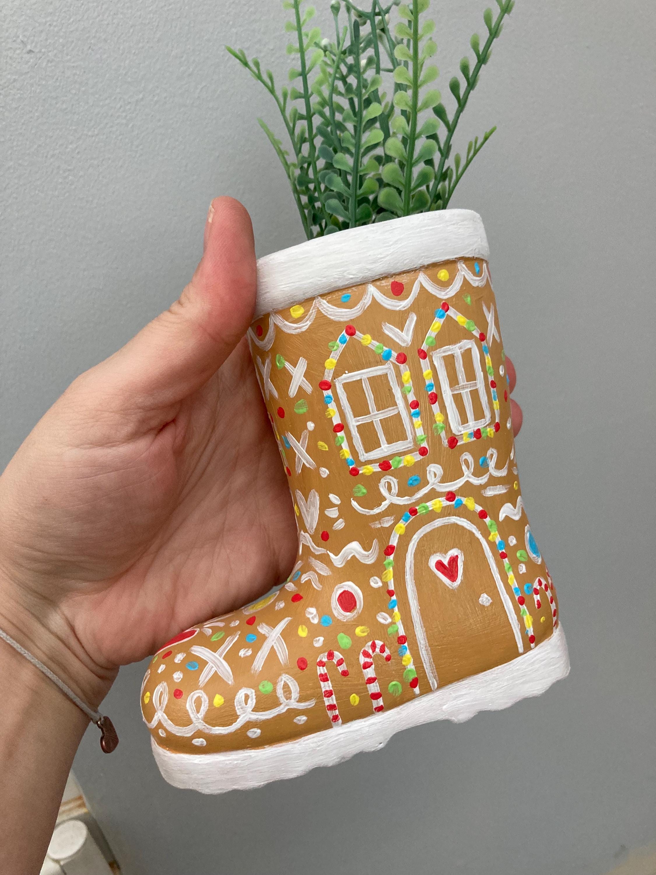 Hand-Painted Wellington Boot Vase * Gingerbread Cottagecore Decor