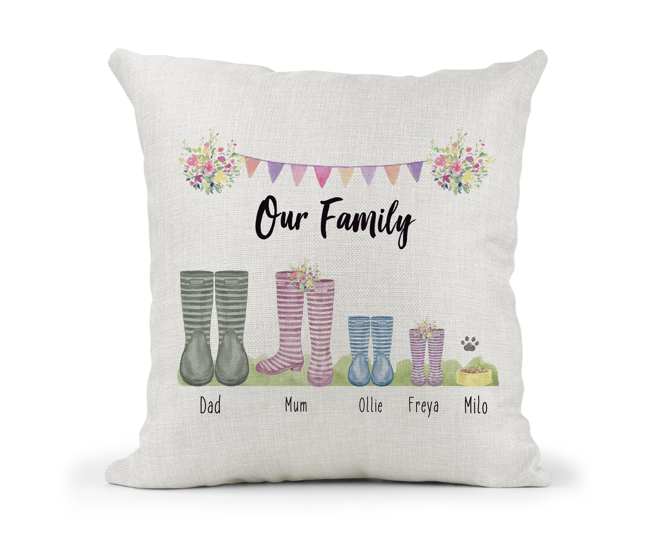 Personalised Welly Boot Family Cream Canvas Cushion, Scatter Cushio...
