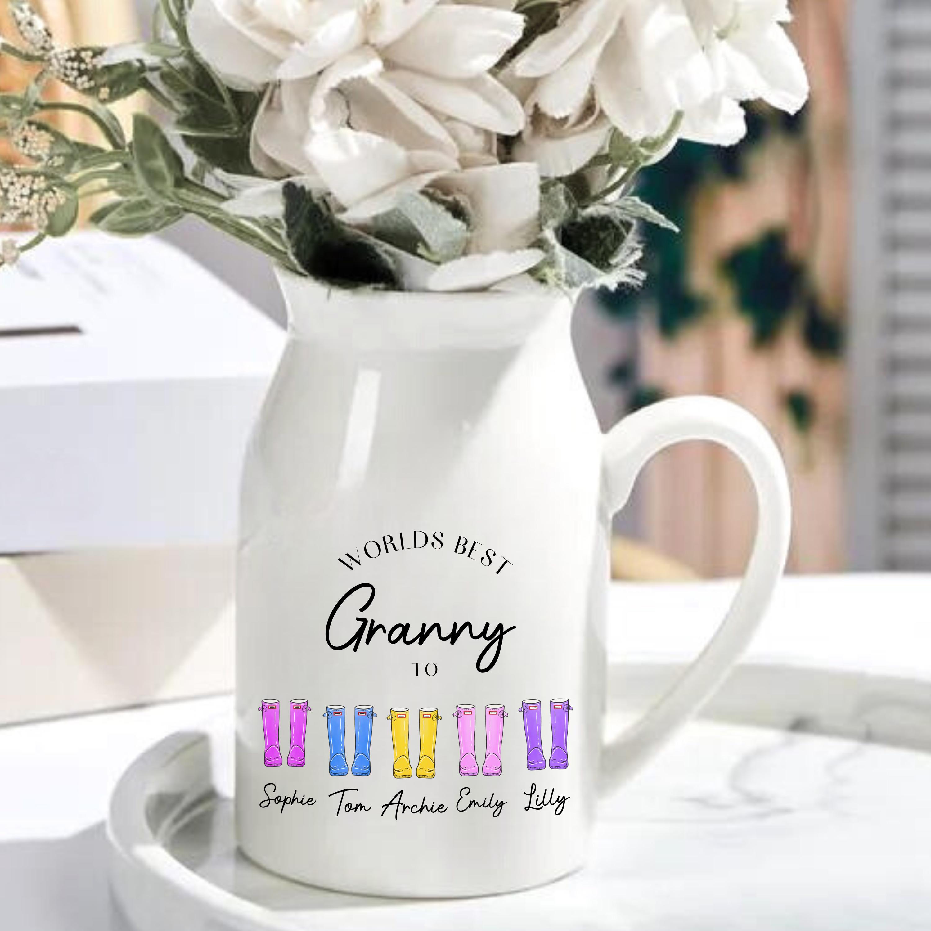 Personalized Welly Boot Family Flower Vase: Nanny Gift