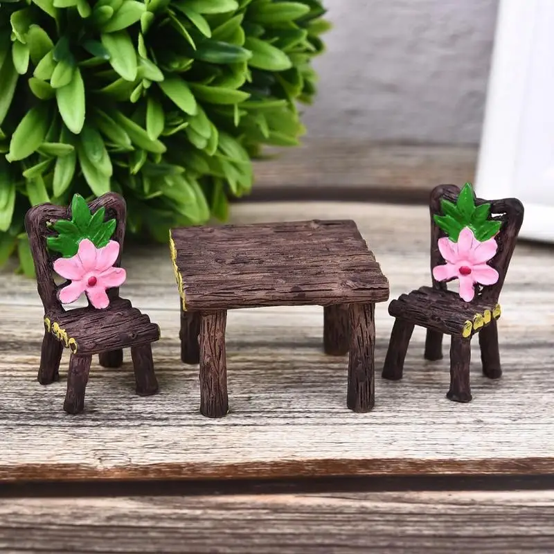 1Set Table Chair Resin Crafts Micro Landscape Ornament Fairy Garden Miniature Decoration