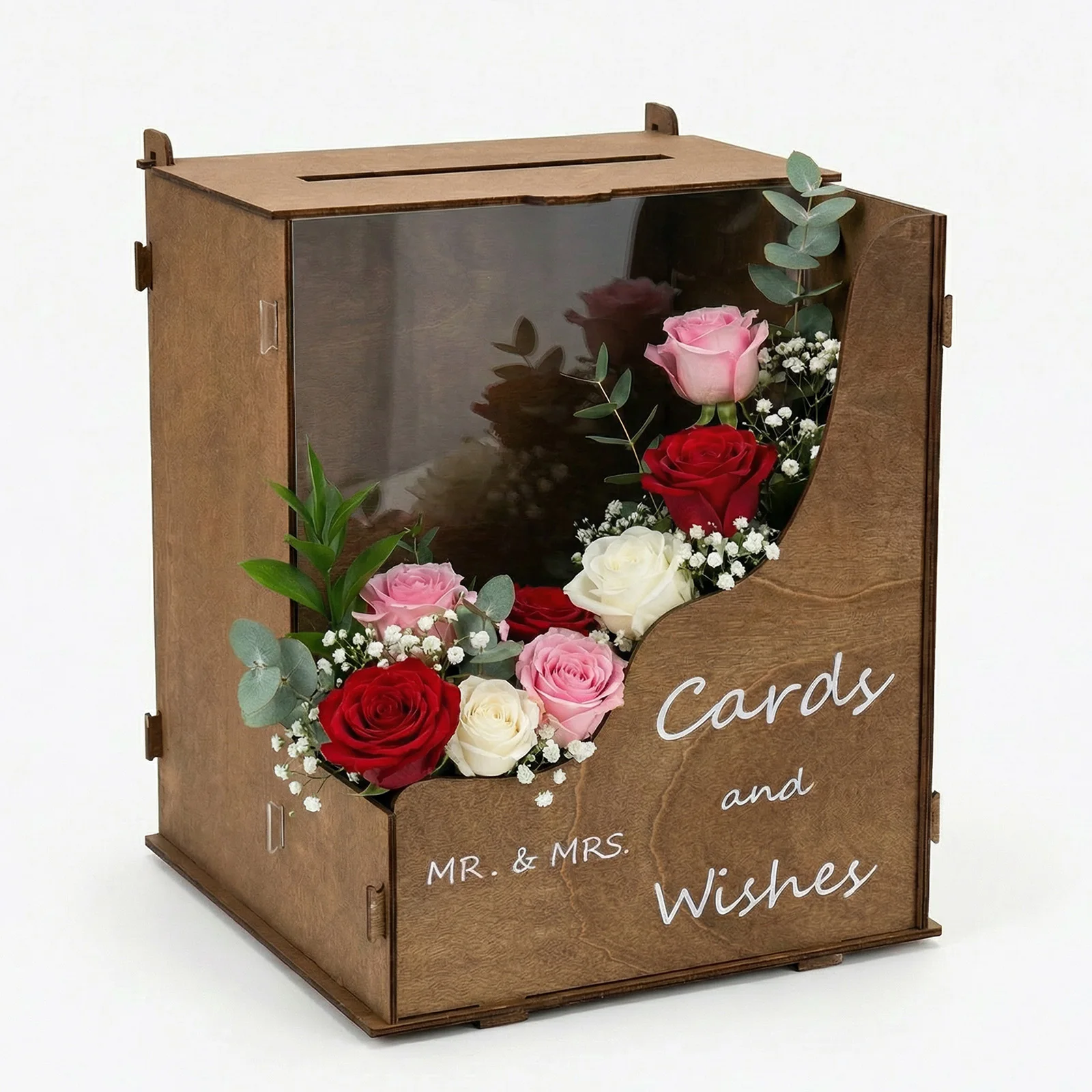 OurWarm Wedding Card Box with Rustic Flower Trough & Acrylic Bo...