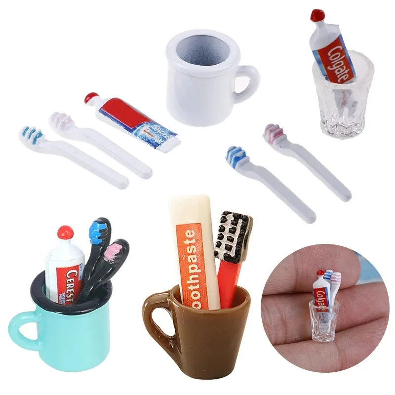 1/12 Dollhouse Simulation Toothpaste Toothbrush Cup Set Dollhouse Mini Bathroom Decoration Dolls Hou...