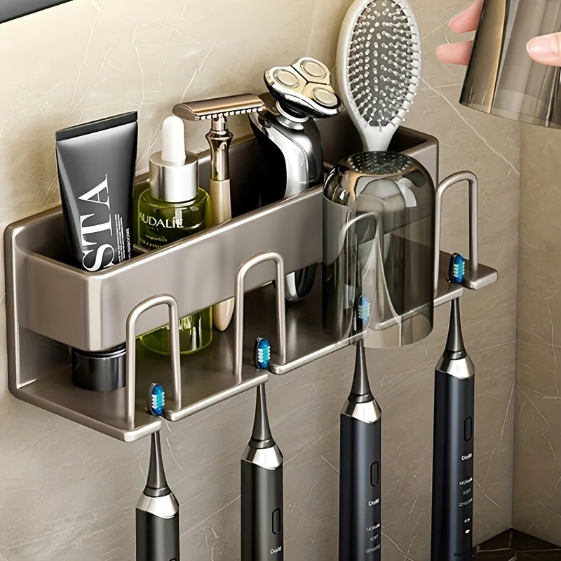 1 Piece Of 2/3/4 Cup screw Toothbrush Holder Wall Mounted Aluminum Electric Toothbrush Holder Toilet...