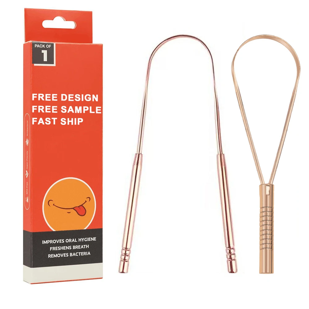 Custom Logo Tongue Cleaner Copper Tongue Scraper Premium Metal Tong...