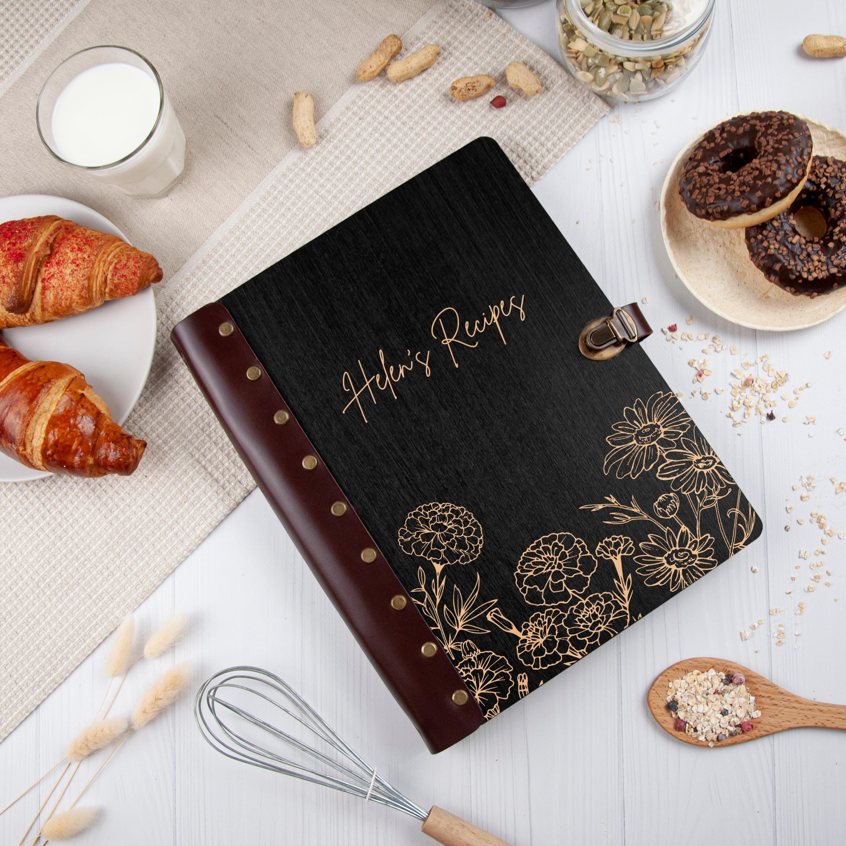 Personalized Wooden Recipe Book with Birth Month Flower - Custom Co...
