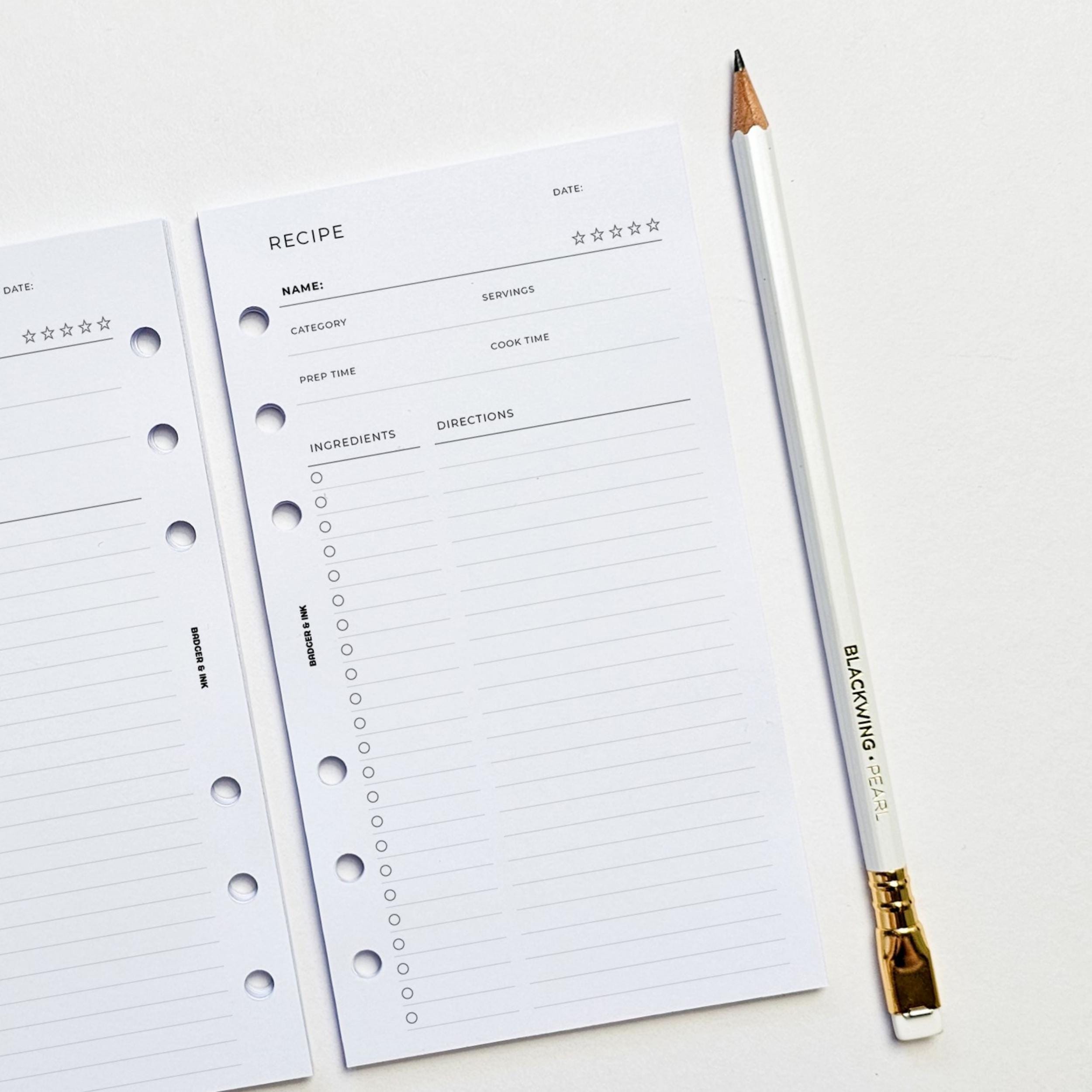 PRINTED Personal Recipe Planner Inserts | Meal Prep | Recipe Binder...