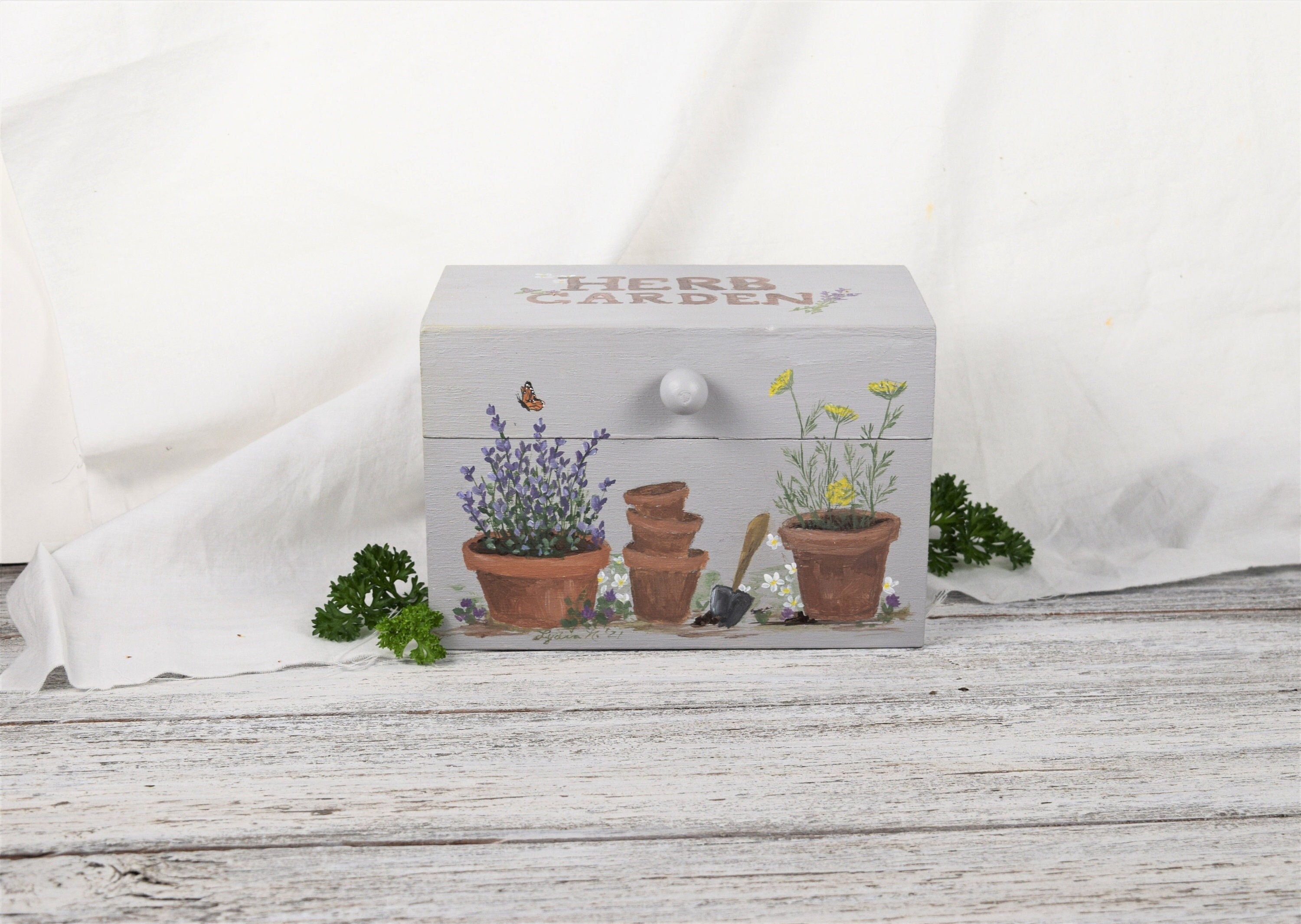 Hand Painted Recipe Box: Cottage Herb Garden Kitchen Decor, Bridal ...