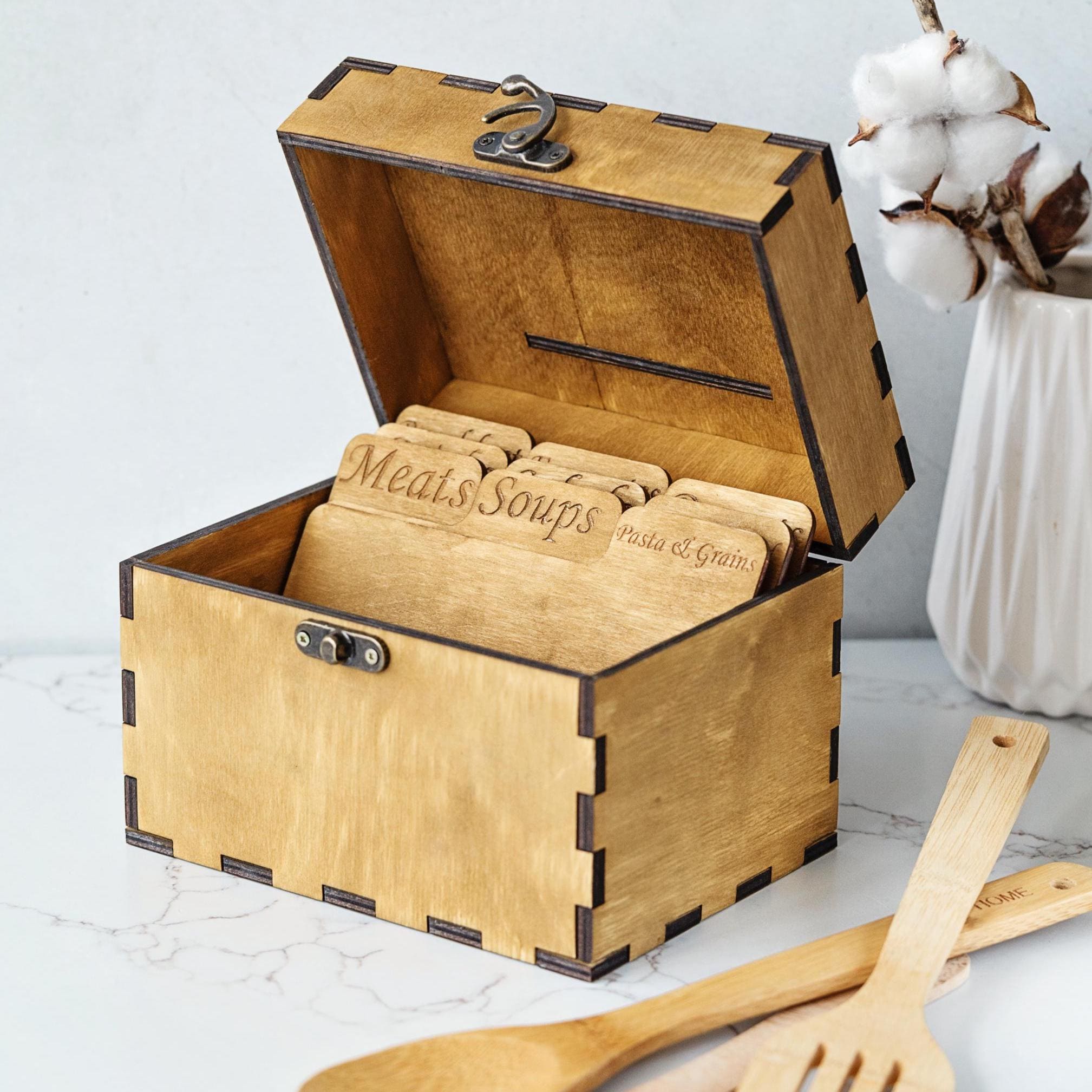 Wooden recipe box, Custom recipe box, Recipe holder box, Recipe car...