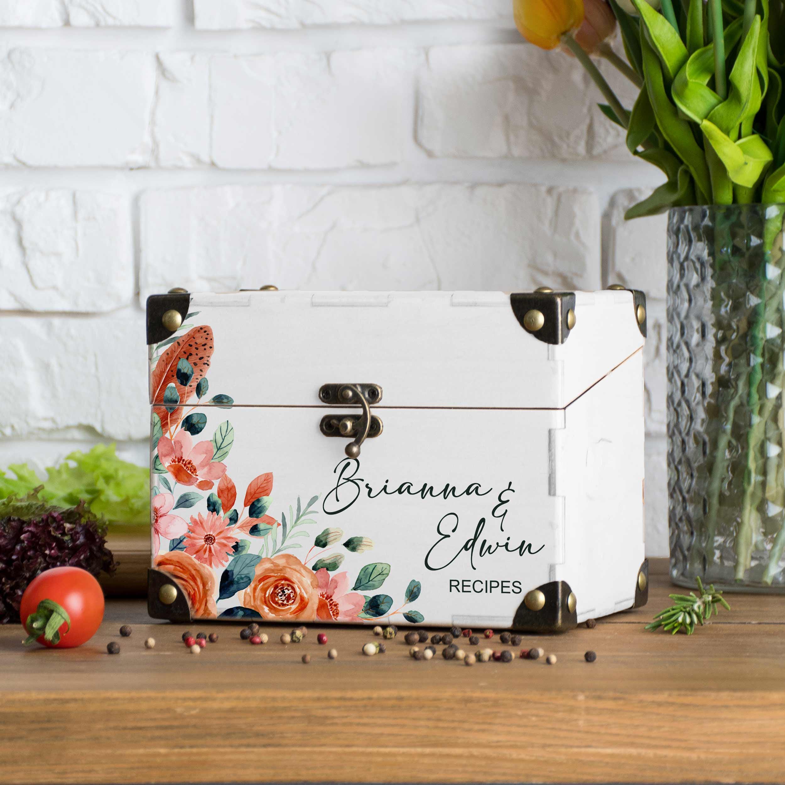"Discover the charm and functionality of our handmade personalized recipe box. Crafted from hig...